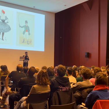 Les spectateurs et intervenants sont ensuite invités à discuter autour d’un verre - et d’une part de quatre-quarts, naturellement.